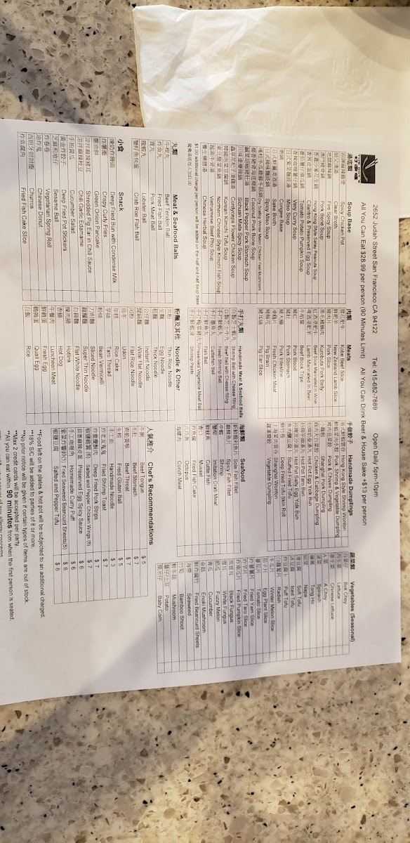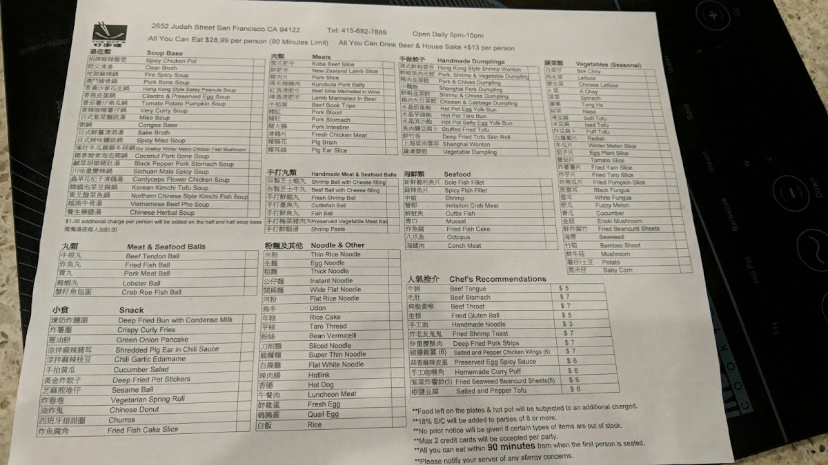 This menu suits casual gatherings, whether a quiet dinner for two or a lively group meal. The variety of fresh ingredients and comforting broths fits the inviting atmosphere of this neighborhood spot, where the focus is on enjoying the ritual of cooking and sharing food together. The self-serve buffet style also makes it easy to customize your experience and pace the meal according to your mood.